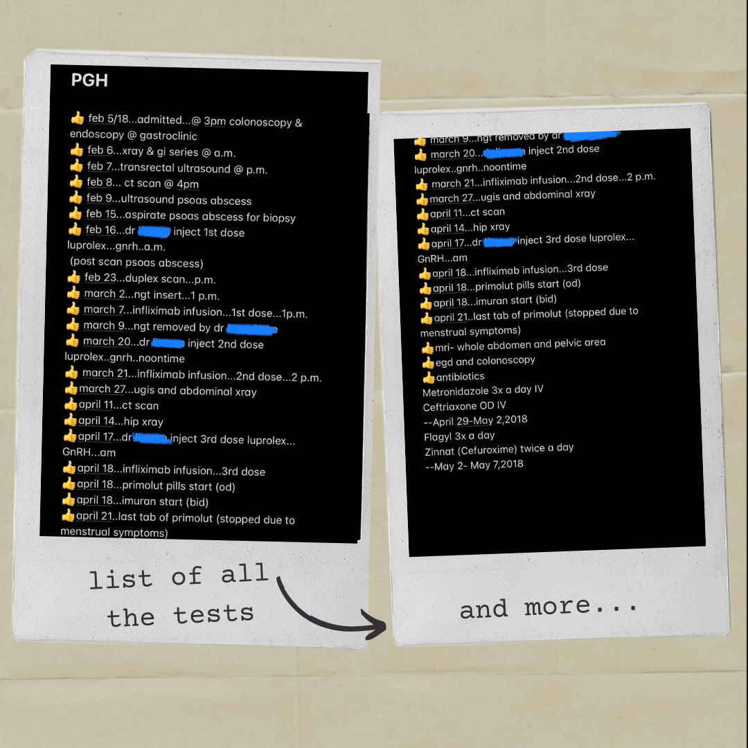 “They put me in anesthesia. When I opened my eyes, I saw Daddy first and asked him what happened. I expected the worst, like maybe I had cancer. But I was informed that nothing has been done yet because when I was put to sleep, they saw there was a big lump in my tummy and they thought more tests were necessary to confirm what it was. The doctors proceeded with a CT Scan and decided they needed to perform an exploratory laparotomy to see what’s inside me. It’s when they found out that my intestines are sticking together like cheese. The diagnosis was intestinal tuberculosis.”